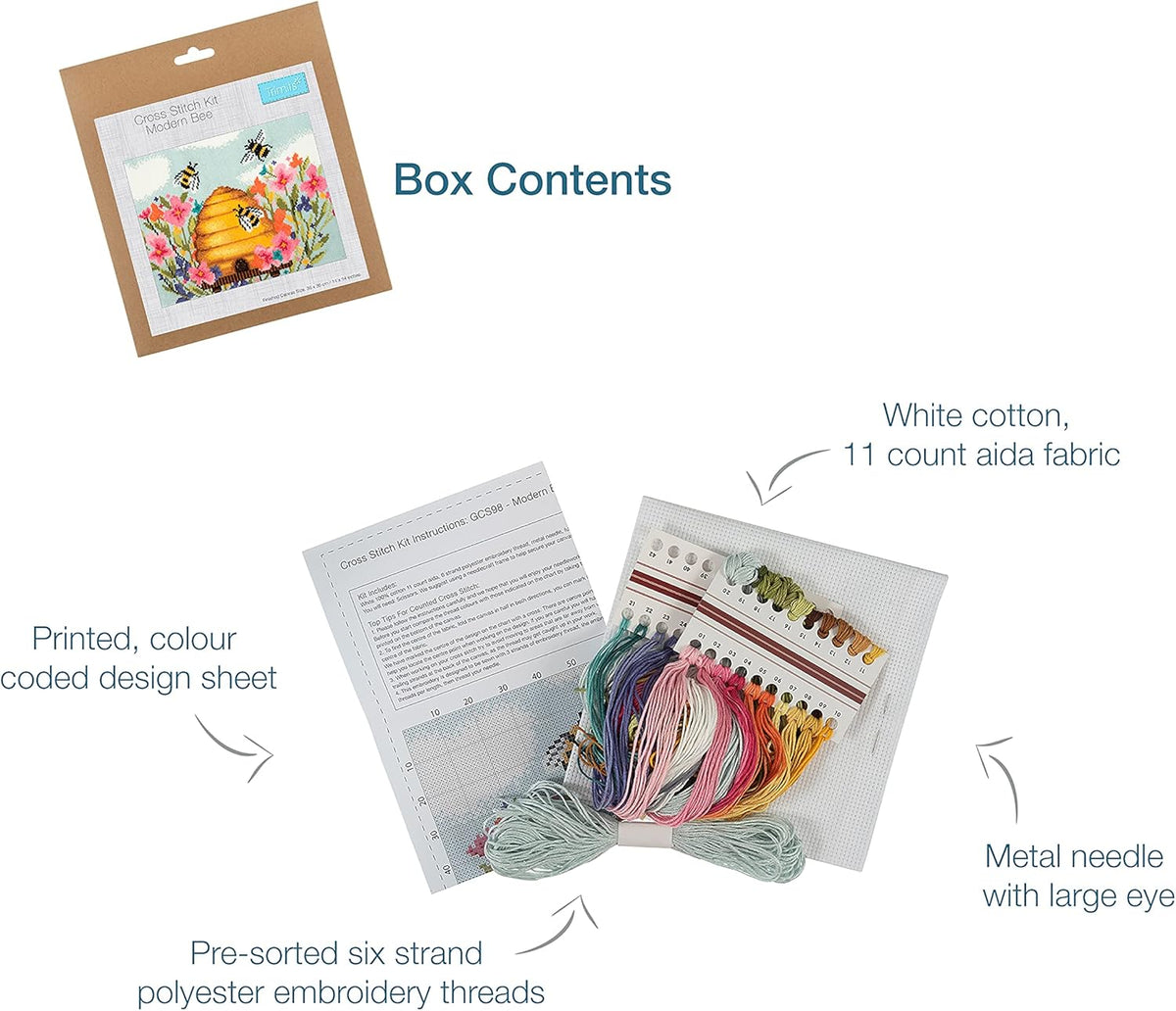 Our Modern Bee Hive Cross-Stitch Kit captures that golden 'golden hour' glow with a vibrant, high-contrast design. Featuring a bustling hive nestled among delicate Spring flora, this piece is a masterclass in modern botanical art.